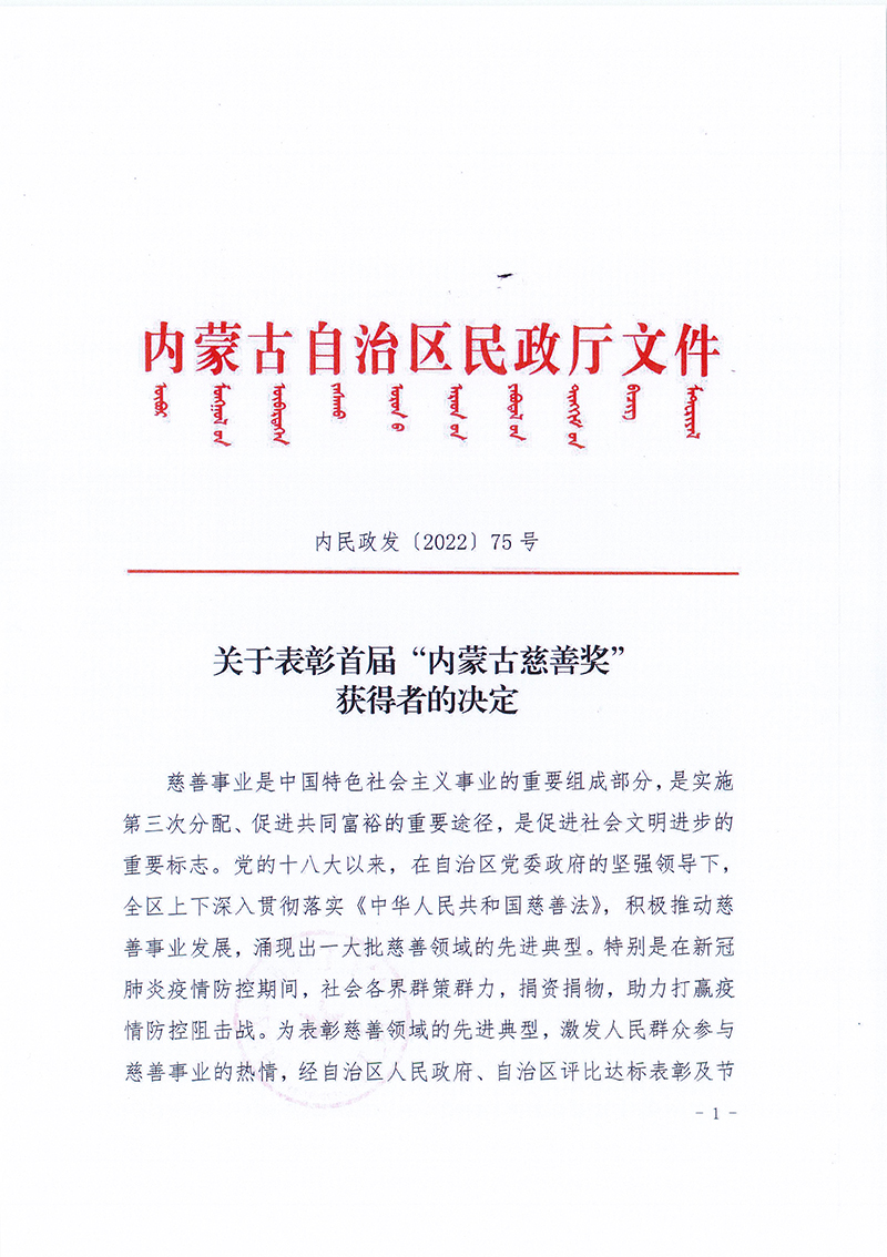 關(guān)于表彰首屆“內(nèi)蒙古慈善獎”獲得者的決定